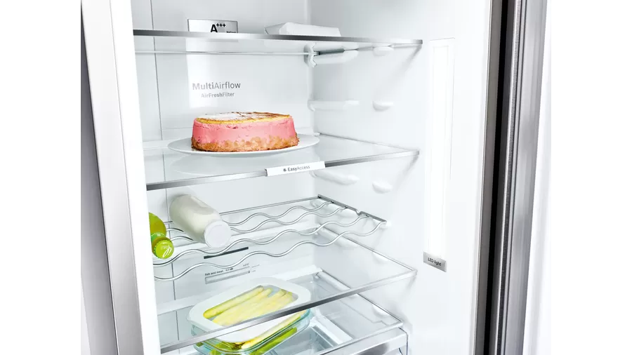 MultiAirFlow evenly circulates cool, fresh air to maintain consistent temperatures throughout the entire fridge cavity, from the door bins to back corners.