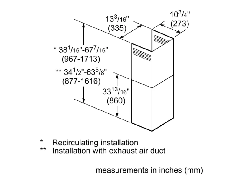 Wall Mounted Pyramid Chimney Hood Duct Extension Accessory Kit - for 9' to 11.5' Ceilings