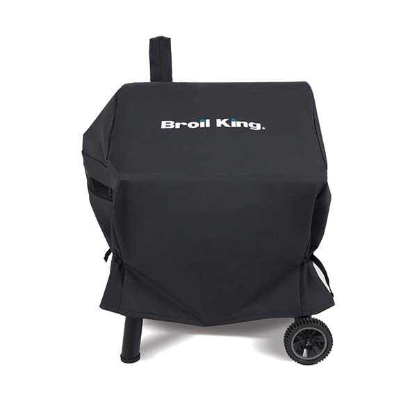Protect your new charcoal grill from rain, snow and windy conditions. This cover is constructed from a durable and weather resistant PVC outer shell with a polyester lining. Includes hook and loop closures, polyester handles on each side for easy removal, and the Broil King logo screened onto the front.
