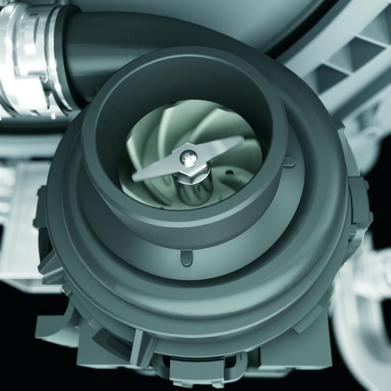 To ensure consistently clean items, this stainless steel blade rotates at 3,600 RPM to pulverize food particles and helps to prevent large particles from clogging the wash arms.