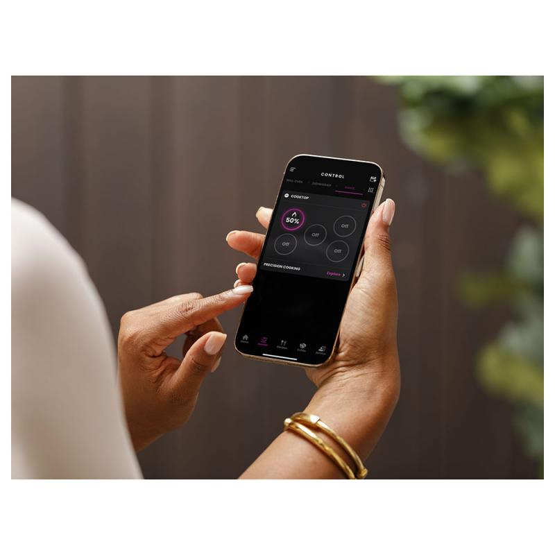 This smart cooktop features Built-in WiFi so you can monitor your burners and view power levels, precision temperature , or on/off.