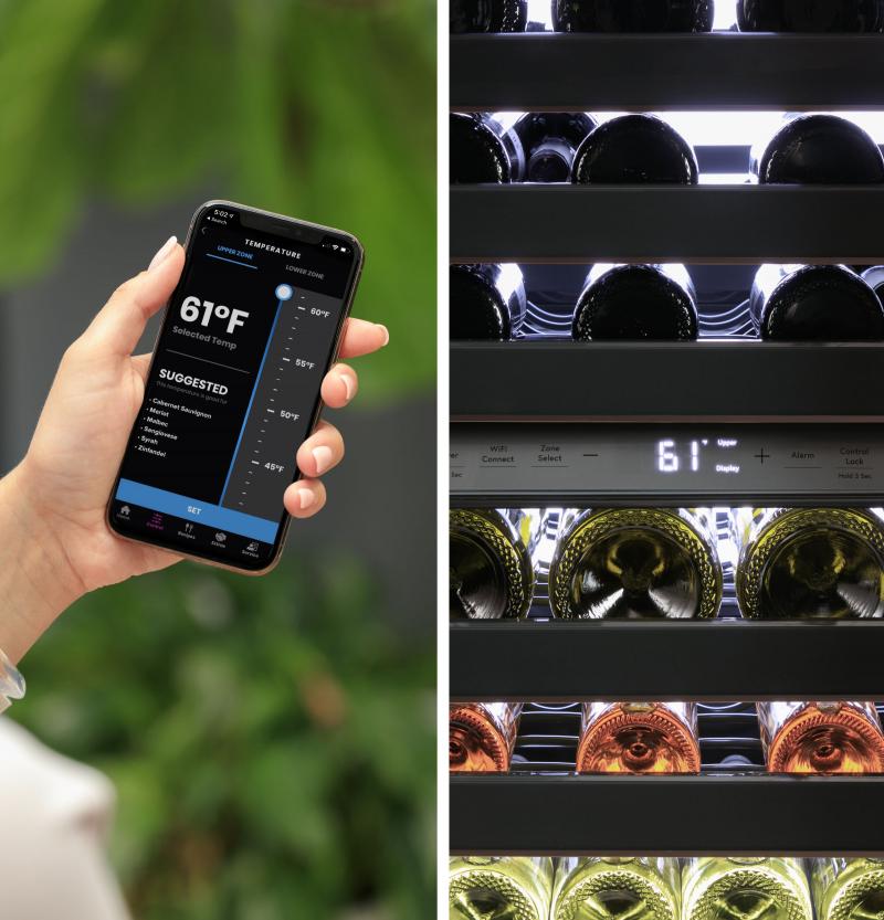The wine center has Built-In WiFi so you can control it from anywhere. Using the SmartHQ app, you can remotely change your temperature or dim the LED light wall. Plus, you'll get the latest connected home capabilities with new modes and updates