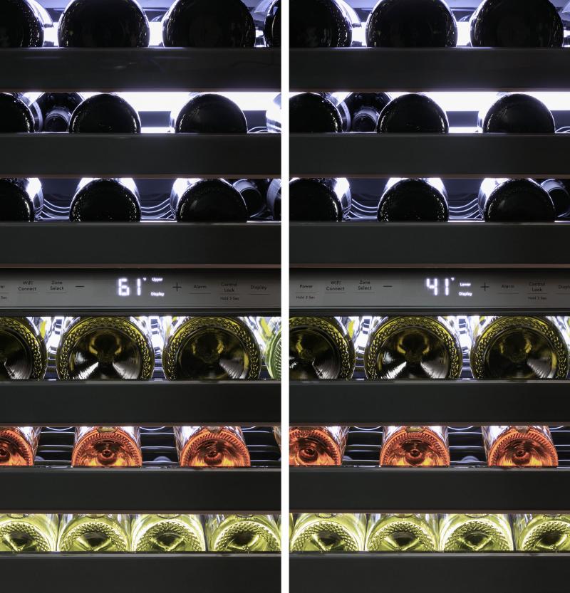 This wine center has two distinct zones that maintain any temperature between 41 and 61 degrees Fahrenheit, so you can keep both red and white wines at the perfect serving temperature