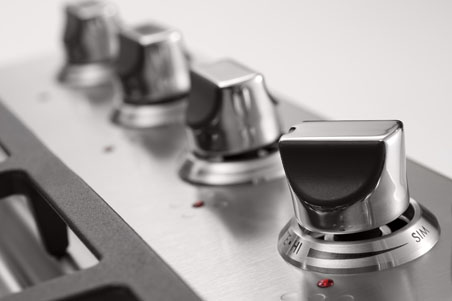 Restaurant grade, die cast chrome platedmetal knobs formatted with plastic insertsthat stay cool to the touch..