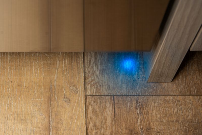 Blue PowerBeam shines a blue light on the floor when running.
