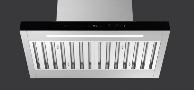 Smart functionality enables hood to automatically turn on in conjunction with a compatible Dacor cooking product.