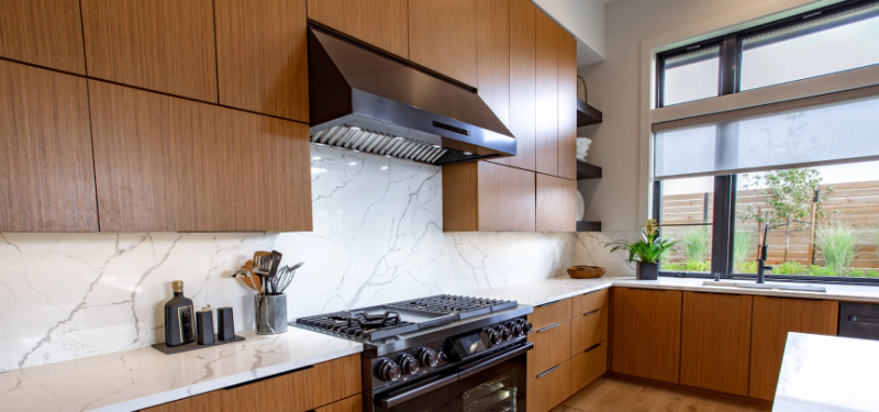 Strip LED lighting illuminates your cooking area in an elegant glow with more energy efficiency than standard halogen lighting.