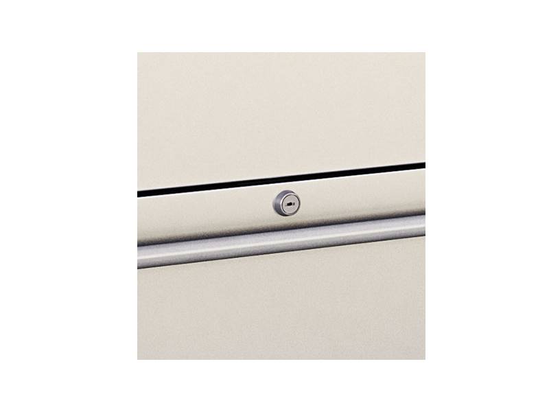 - Lock is mounted on the top edge of bottom drawer on drawer models