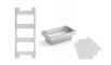 - Includes snap-in tray, 3 stainless steel pans and 3 stain-resistant translucent lids