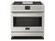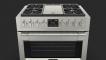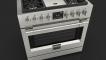 This all-new 36" dual fuel range comes with 4 burners and a central griddle. Each burner features our 5-in-1 Crescendo burner beneath our continuous heavy-duty cast-iron grates with a Trilaminate Stainless Steel griddle, providing unparalleled flexibility. The Crescendo burner has the power to sear, sauté, and boil but also the control to temper and simmer the most delicate dishes.