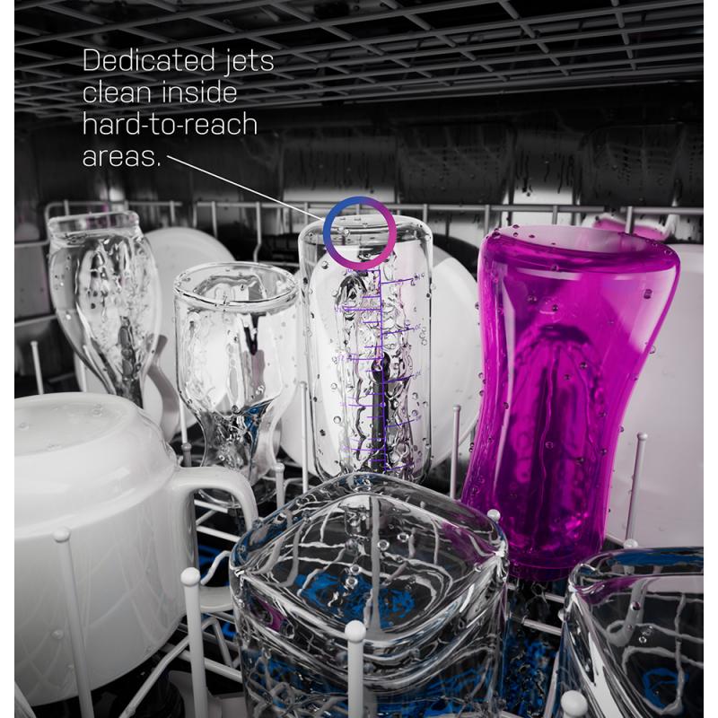 Ensure a deep clean for tall items, narrow glasses, jars and more thanks to this dishwasher with bottle jets. 4 powerful jets direct water and detergent inside to effectively wash hard-to-reach areas