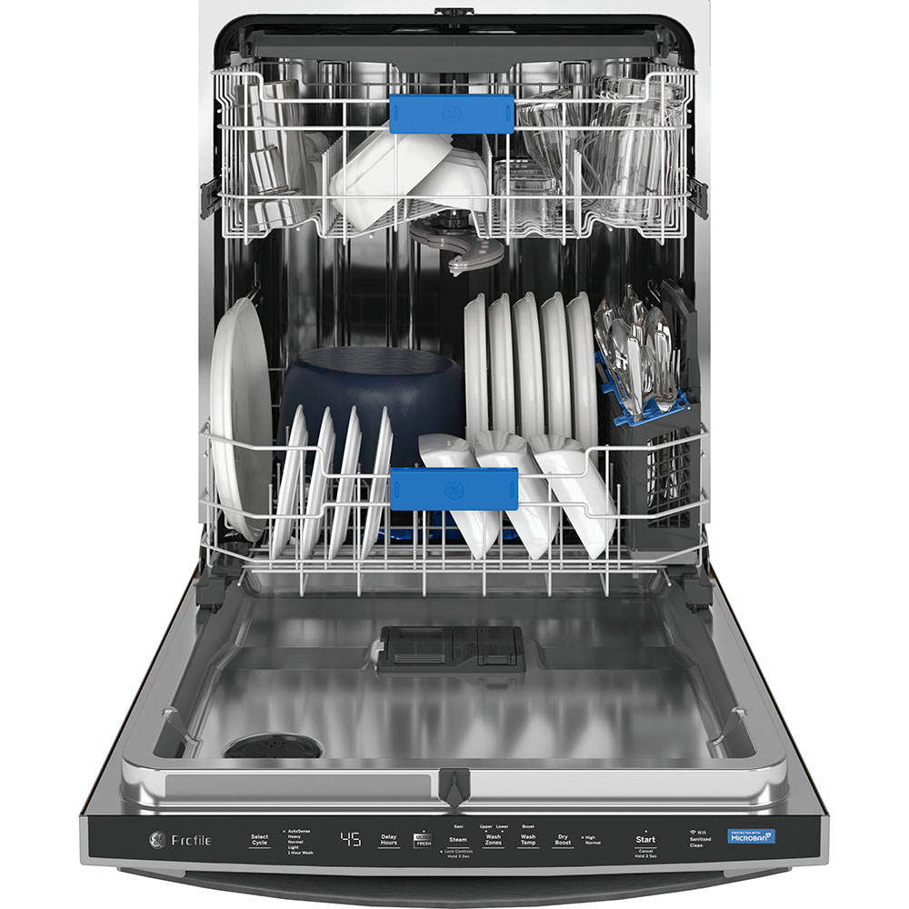 Smart dishwasher algorithms introduce clean air and reduce moisture. Interior filters are treated with Microban antimicrobial technology.