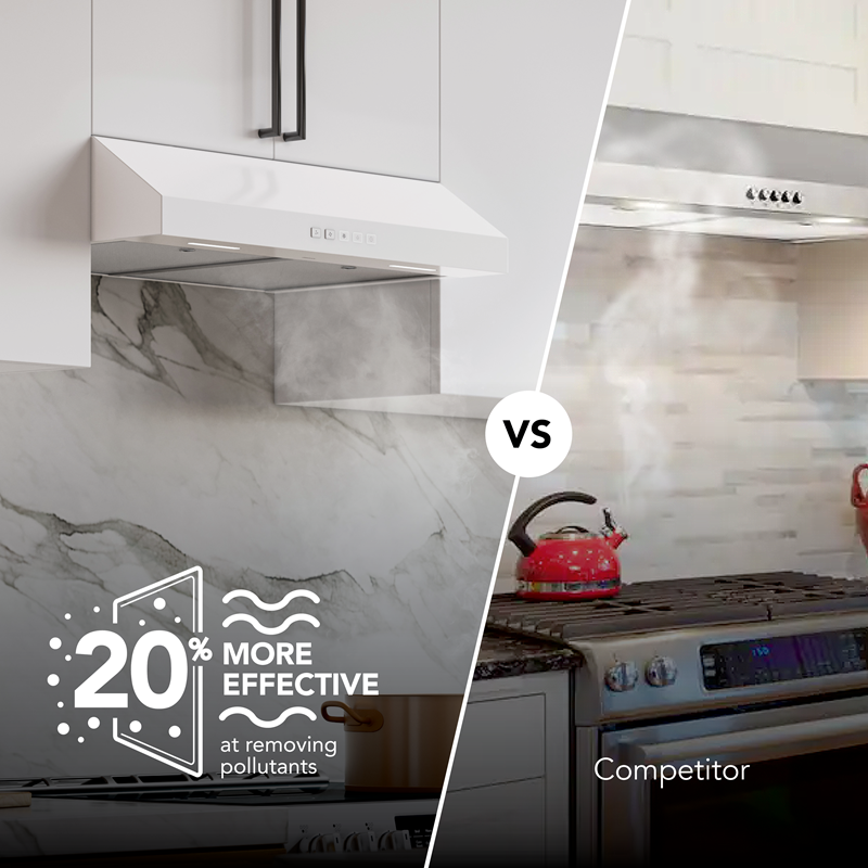- 20% More Effective: Trust in the Broan-NuTone brand to more effectively remove pollutants in your kitchen than the leading competitor, with strong airflow at 350 Max Blower CFM
