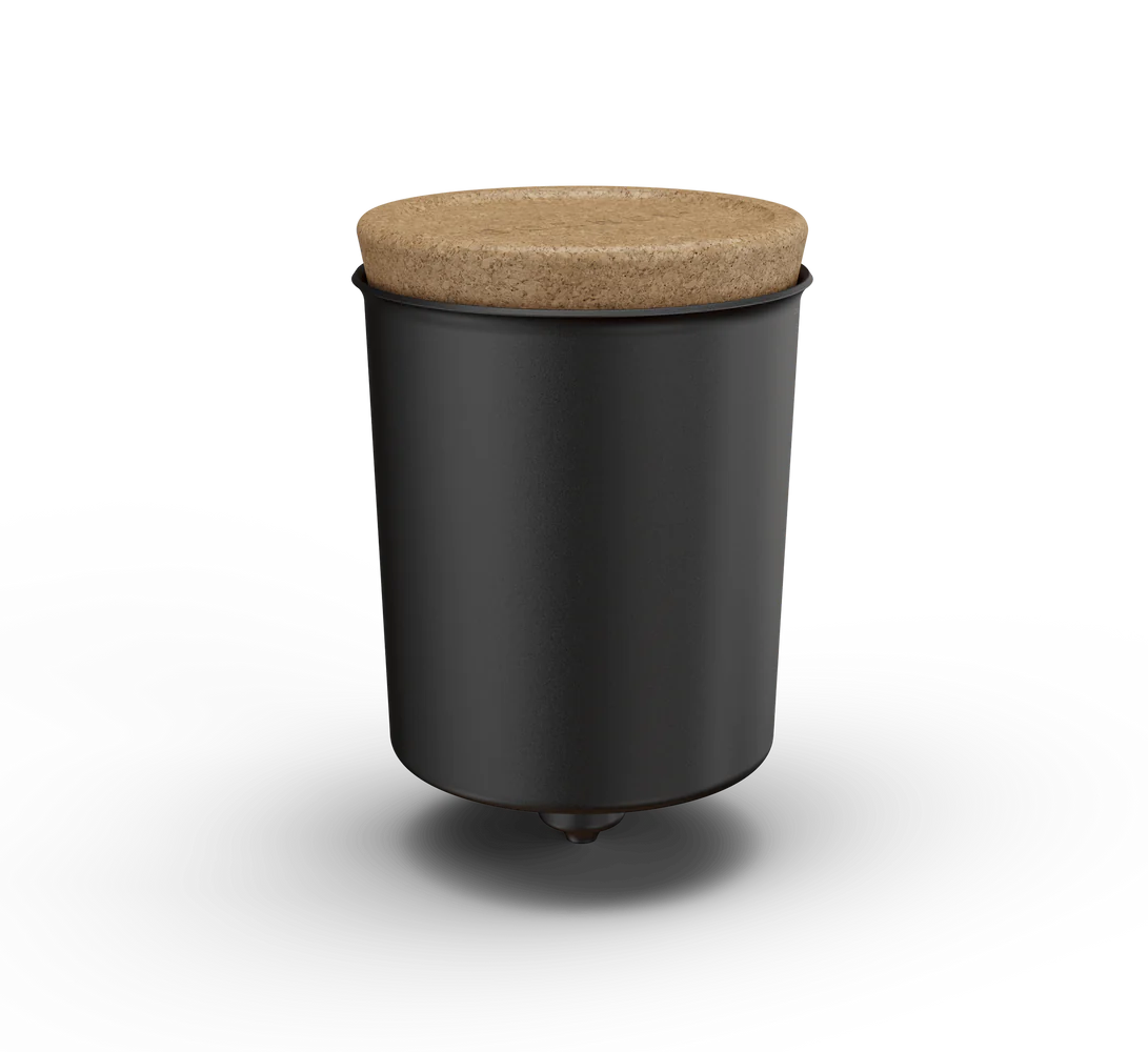 A black anodised aluminium funnel with a cork top, engineered with precision to inject just the right amount of water into the oven and create steam on entry.