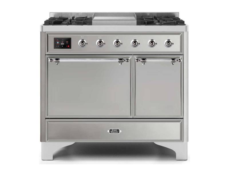 40" ILVE Majestic II Dual Fuel Liquid Propane Freestanding Range with Chrome Trim in Stainless Steel - UMD10FDQNS3/SSC LP