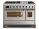 48" ILVE Majestic II Dual Fuel Liquid Propane Freestanding Range With Bronze Trim In Stainless Steel - UM12FDNS3/SSB LP