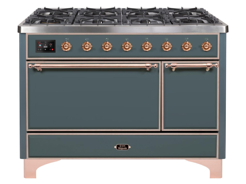 48" ILVE 5.02 Cu. Ft. Majestic II Dual Fuel Liquid Propane Freestanding Range in Blue Grey with Copper Trim - UM12FDQNS3/BGP LP