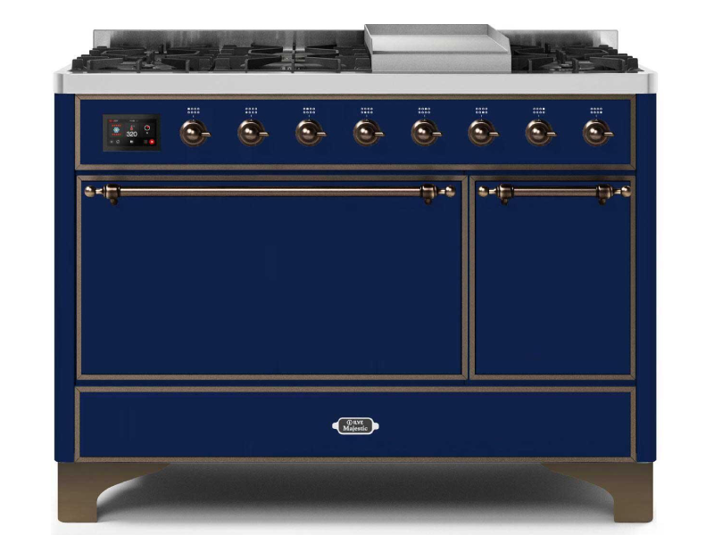 48" ILVE 5.02 Cu. Ft. Majestic II Dual Fuel Liquid Propane Freestanding Range in Blue with Bronze Trim - UM12FDQNS3/MBB LP