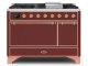 48" ILVE 5.02 Cu. Ft. Majestic II Dual Fuel Liquid Propane Freestanding Range in Burgundy with Copper Trim - UM12FDQNS3/BUP LP