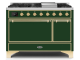 48" ILVE 5.02 Cu. Ft. Majestic II Dual Fuel Liquid Propane Freestanding Range in Emerald Green with Brass Trim - UM12FDQNS3/EGG LP