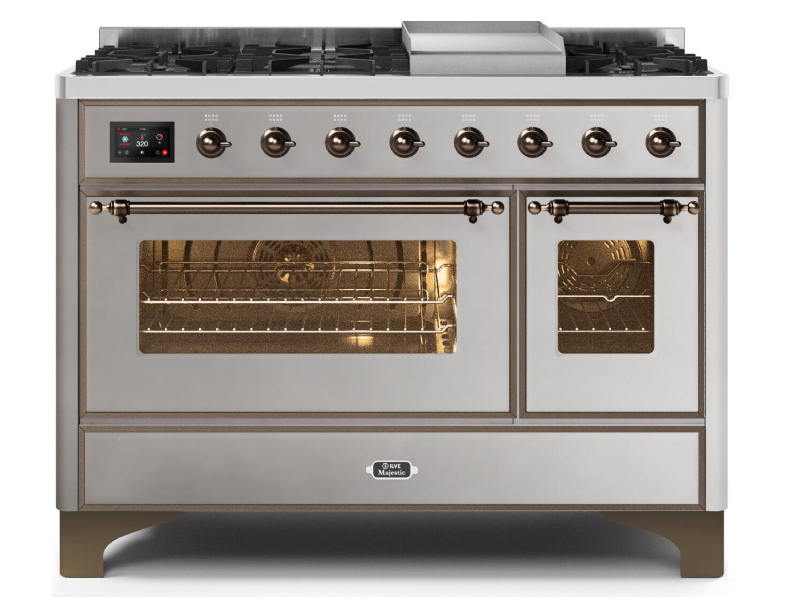 48" ILVE Majestic II Dual Fuel Natural Gas Freestanding Range With Bronze Trim In Stainless Steel - UM12FDNS3/SSB NG