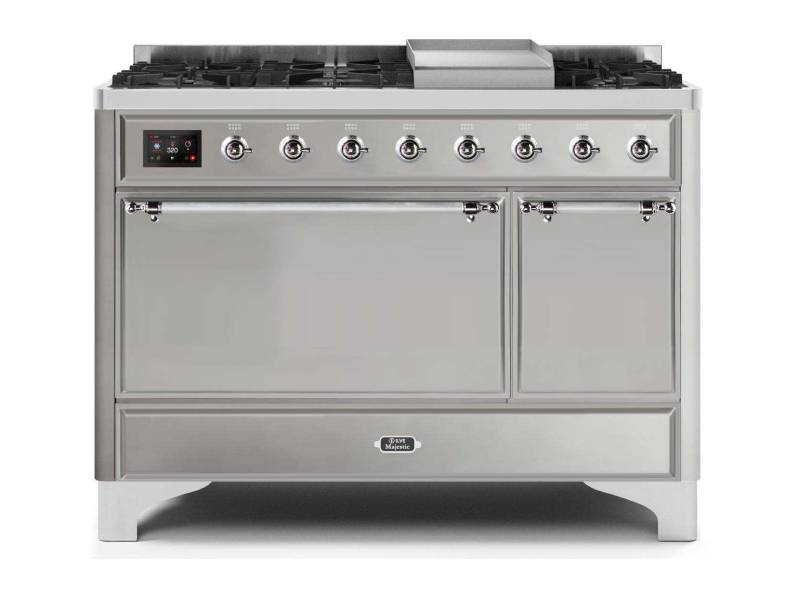 48" ILVE Majestic II Dual Fuel Natural Gas Freestanding Range with Chrome Trim in Stainless Steel - UM12FDQNS3/SSC NG