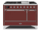 48" ILVE Majestic II Dual Fuel Natural Gas Freestanding Range in Burgundy with Chrome Trim - UM12FDQNS3/BUC NG