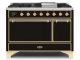 48" ILVE 5.02 Cu. Ft. Majestic II Dual Fuel Natural Gas Freestanding Range in Glossy Black with Brass Trim - UM12FDQNS3/BKG NG
