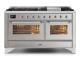 60" ILVE Majestic II Dual Fuel Natural Gas Freestanding Range with Chrome Trim in Stainless Steel - UM15FDNS3/SSC NG