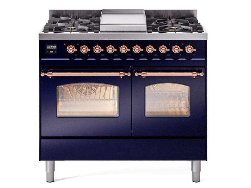 40" ILVE Nostalgie II Dual Fuel Liquid Propane Freestanding Range in Blue with Copper Trim - UPD40FNMP/MBP LP