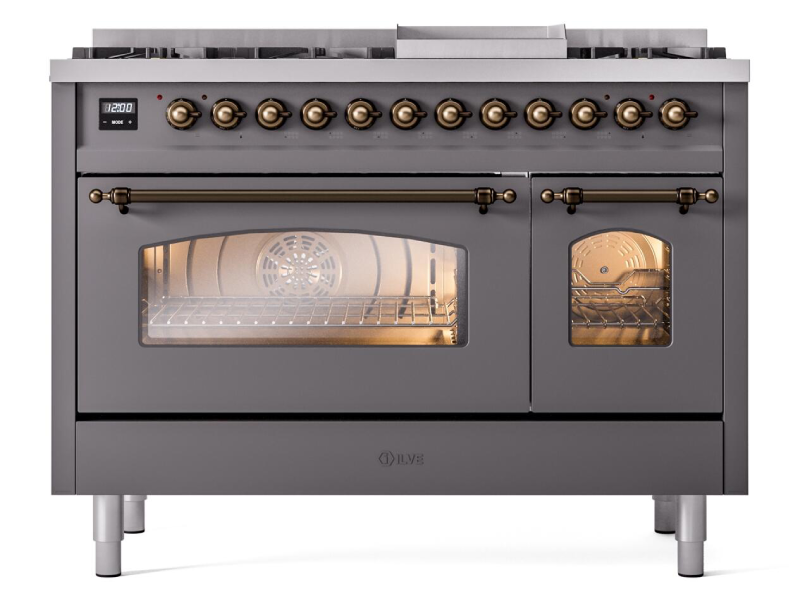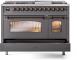 48" ILVE Nostalgie II Dual Fuel Liquid Propane Freestanding Range in Matte Graphite with Bronze Trim - UP48FNMP/MGB LP