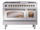 48" ILVE Nostalgie II Dual Fuel Liquid Propane Freestanding Range in Stainless Steel with Bronze Trim - UP48FNMP/SSB LP