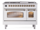 48" ILVE Nostalgie II Dual Fuel Liquid Propane Freestanding Range in White with Bronze Trim - UP48FNMP/WHB LP