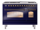 48" ILVE Nostalgie II Dual Fuel Natural Gas Freestanding Range in Blue with Bronze Trim - UP48FNMP/MBB NG