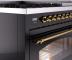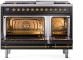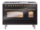 48" ILVE Nostalgie II Dual Fuel Natural Gas Freestanding Range in Glossy Black with Brass Trim - UP48FNMP/BKG NG