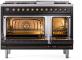 48" ILVE Nostalgie II Dual Fuel Natural Gas Freestanding Range in Glossy Black with Bronze Trim - UP48FNMP/BKB NG