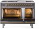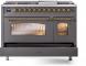 48" ILVE Nostalgie II Dual Fuel Natural Gas Freestanding Range in Matte Graphite with Brass Trim - UP48FNMP/MGG NG