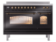 48" ILVE Nostalgie II Electric Freestanding Range in Glossy Black with Bronze Trim - UPI486NMP/BKB