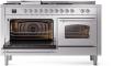 60" ILVE Nostalgie II Dual Fuel Natural Gas Freestanding Range in Stainless Steel with Chrome Trim - UP60FSNMP/SSC NG