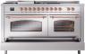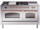 60" ILVE Nostalgie II Dual Fuel Natural Gas Freestanding Range in Stainless Steel with Copper Trim - UP60FSNMP/SSP NG