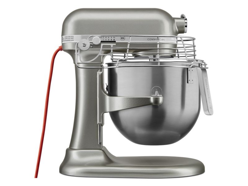 The KitchenAid® NSF Certified® Commercial Series 8 Quart Bowl-Lift Stand Mixer features a stainless steel bowl guard and a powerful, 1.3 HP Motor*. *Horsepower for our mixer motors was measured using a dynamometer, a machine laboratories routinely use to measure the mechanical power of motors. Our 1.3 horsepower (HP) motor reference reflects the horsepower rating of the motor itself and not the mixer’s horsepower output to the mixer bowl. This robust motor, the backbone of our new mixer, delivers .44 HP to the bowl enabling your mixer to deliver consistent power to small and large loads with less heat build-up; resulting in years of dependable mixing. Whencombined with, and guided by our new advanced motor control board, this is our longest lasting and most efficient motor yet. Simply put, our new, highly efficient, special purpose motor delivers the power you need when you need it.