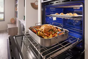 Makes it easy to cook with large or heavy bakeware. Sure-grip handle and smooth roll-out simplify loading and unloading.