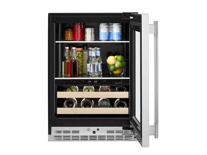 24" KitchenAid Beverage Center with Glass Door and Wood-Front Racks - KUBR524SPS
