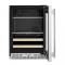 This 24" Undercounter Beverage Center with Full-Extension Wood-Front Racks stores 14 wine bottles below with room for drinks and food on the full-width shelves above. Two Temperature-Controlled Zones adjust for what you’re storing\, and a Temperature Monitoring System with sensor alert adds peace of mind. Fully Flush Installation with Hidden Hinges provides a built-in look within cabinetry.