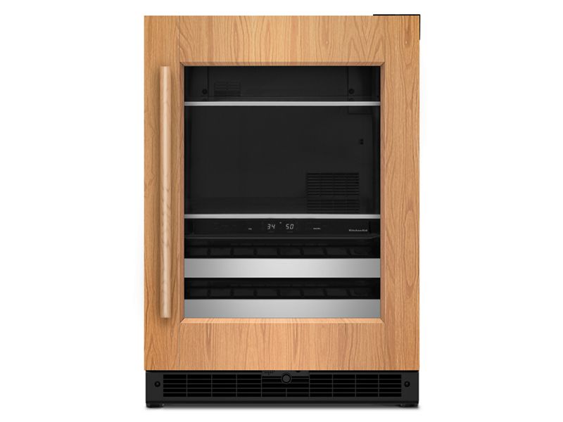 This 24" Undercounter Beverage Center with Full-Extension Metal-Front Racks stores 14 wine bottles below with room for drinks and food on the full-width shelves above. Two Temperature-Controlled Zones adjust for what you’re storing, and a Temperature Monitoring System with sensor alert adds peace of mind. This Panel-Ready appliance will seamlessly fit into your cabinetry, creating a cohesive look.