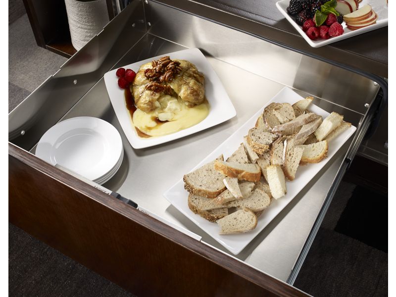 uses a thermostat to monitor the heat inside the warming drawer and automatically adjusts as needed to help prevent food from drying out.