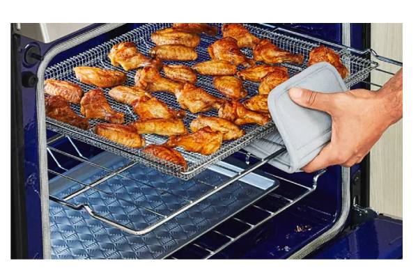 Air Fry delivers crispy flavour fast with no preheating and make enough to feed a crowd, with no need to buy yet another gadget that takes up counter space. Just press Air Fry to prepare favorite snacks like French fries, hot wings and more. High temperatures and the convection fan work together to deliver the flavour and crunch you crave without the oil-or the guilt.