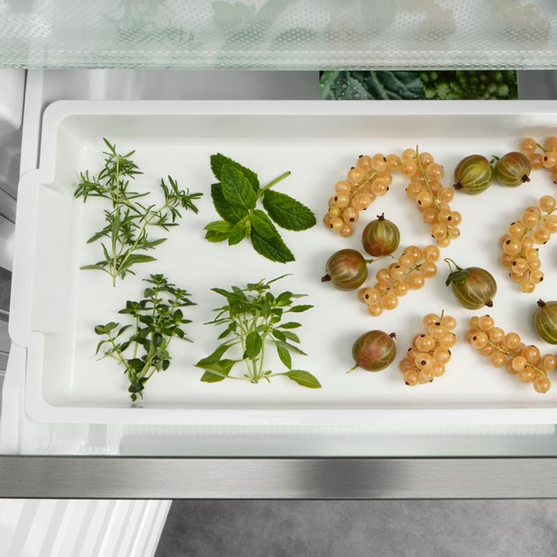 Do you want your frozen berries to be fresh and firm after defrosting – and to not turn into a compote? The freezer tray is ideal for this type of delicate food. When spread out well on the plastic tray, fruits and herbs freeze quickly and without being squashed. You can easily insert the freezer tray in the freezer drawer and remove it again.