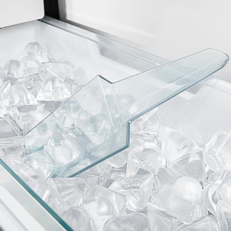 The Liebherr ice scoop makes portioning and transporting of ice easy. Thanks to the slanted tip and the ergonomic handle, ice cubes can make it from your IceTower into your drinks quickly and easily. The robust ice scoop made of sturdy plastic is also pleasing to the eye thanks to its satin surface in transparent glacier green.