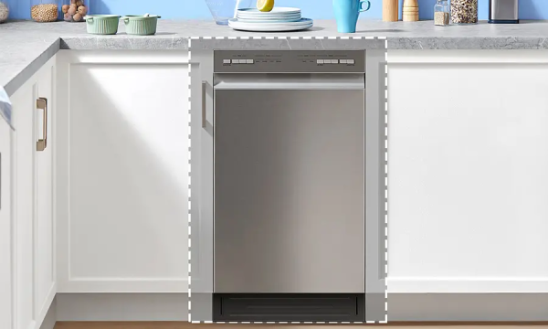 - This 18" wide dishwasher fits perfectly in small kitchens while offering ample space for your dishes, making it ideal for tight spaces.